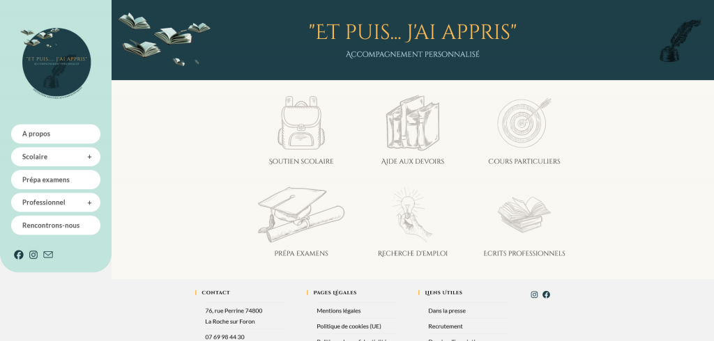 Site web WordPress réalisé pour une entreprise de cours particuliers et soutien scolaire à La roche sur Foron.